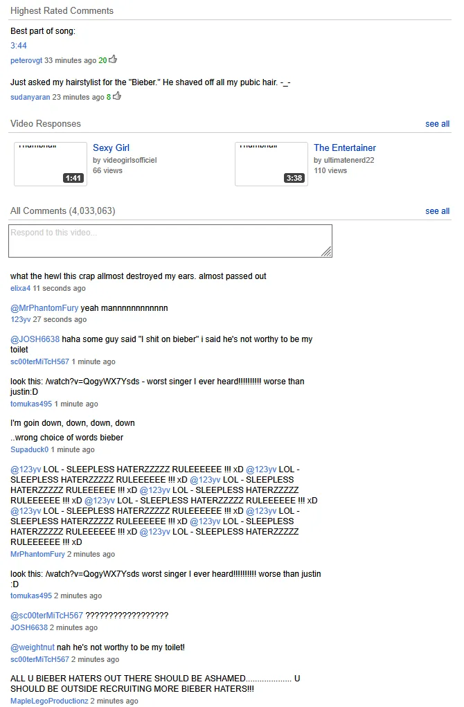 - Baby by Justin Bieber would be the most viewed video on the platform, with 481 million views,